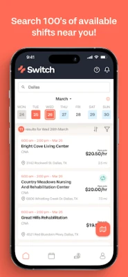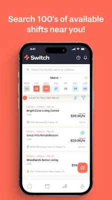 Switch is the easiest way to get the shifts you want at the rates you need - in the best facilities in your area. You can build your own schedule at skilled nursing facilities, nursing homes, rehabilitation centers, post-acute centers, assisted living communities, and hospitals near you!